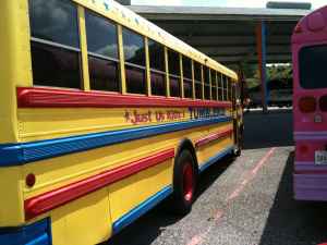 The Ward bus has higher ceiling height than the average bus, makes cartwheels and teaching much easier!