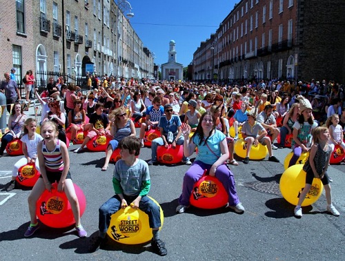 … 1505 people bounced together in central Dublin on space hoppers….