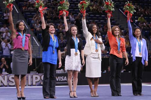 Wednesday night, the 2000 U.S. Olympic team — Tasha Schwikert, Elise Ray, Kristen Maloney, Dominique Dawes, Jamie Dantzscher, Amy Chow — received in Hartford the bronze medals they had earned in Sydney. …