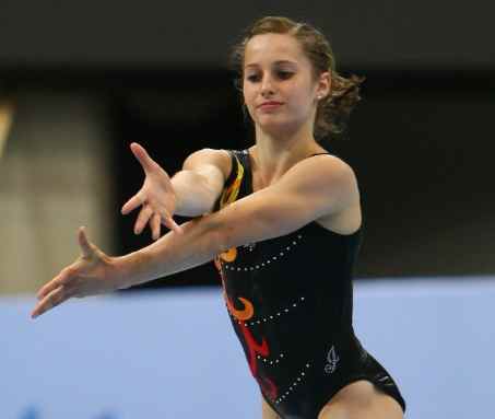 Yesterday I happened by coach Yelena Davydova and Kristina Vaculik training all alone in a huge gym, the rest of the Canadian team flying back to the Great White North as a cost savings measure. Kristina is a “reserve” for the all-around and still has to be ready if she gets called up.