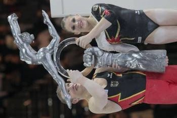 Blythe of Gymnastics Examiner was impressed with the unusual circus like format of the mixed pairs Swiss Cup. Elisabeth Seitz and Fabian Hambuechen walked off with the $30,000 first prize.