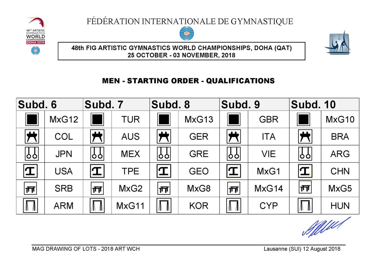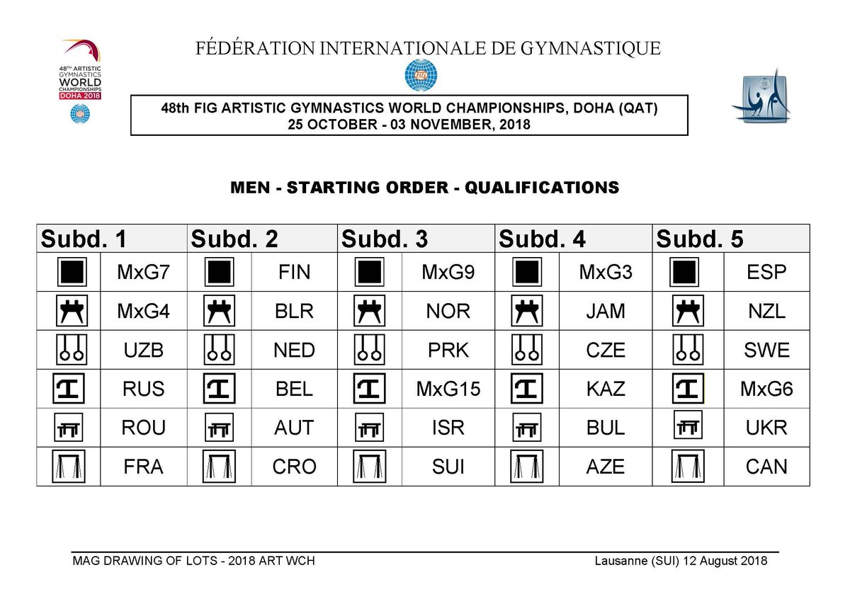 Worlds Doha MAG draw Share this: Click to share on X (Opens in new window) X Click to share on Facebook (Opens in new window) Facebook Click to share on Tumblr (Opens in new window) Tumblr Click to email a link to a friend (Opens in new window) Email Click to print (Opens in new window) Print Like Loading... Published by Rick Mc Career gymnastics coach who loves the outdoors, and the internet. View all posts by Rick Mc