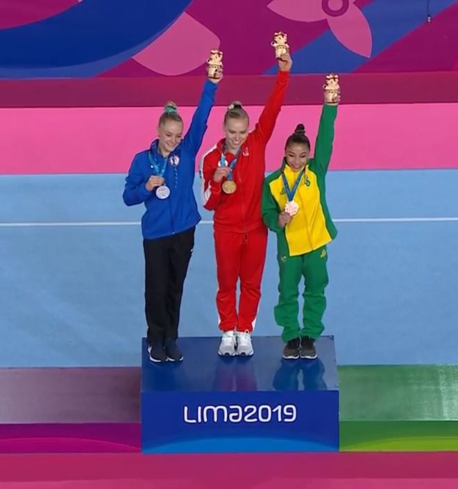 Ellie Black defends Pan Am title Oh Canada. π₯ Ellie Black, Canada, 55.250 π₯ Riley McCusker, United States, 55.125 π₯ Flavia Saraiva, Brazil, 54.350 theGymter.net LIVE blog Balance Beam Situation LIVE blog Share this: Share on X (Opens in new window) X Share on Facebook (Opens in new window) Facebook Share on Tumblr (Opens in new window) Tumblr Email a link to a friend (Opens in new window) Email Print (Opens in new window) Print Like Loading... Published by Rick Mc Career gymnastics coach who loves the outdoors, and the internet. View all posts by Rick Mc