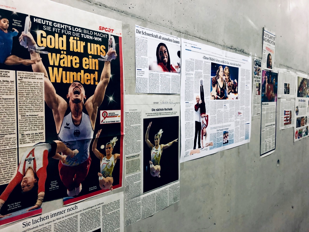 Past stars including Philipp Boy and Fabian Hambüchen are everywhere. Gymnasts are pleased to be in an arena with a loud audience and so much Press. The Men’s team from Chinese Taipei looked a little bewildered to be answering so many questions.