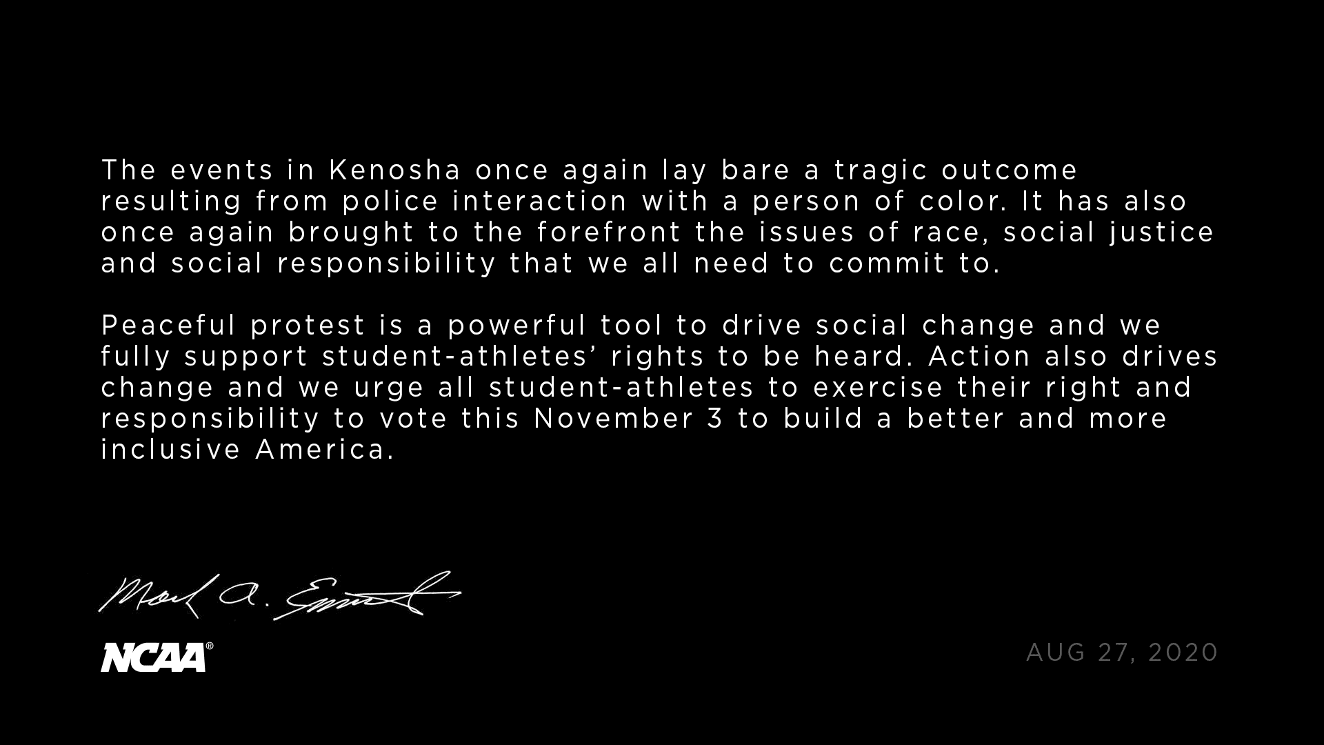 NCAA President Mark Emmert’s Statement A Black man, Jacob Blake, was shot in the back multiple times by police. Share this: Click to share on X (Opens in new window) X Click to share on Facebook (Opens in new window) Facebook Click to share on Tumblr (Opens in new window) Tumblr Click to email a link to a friend (Opens in new window) Email Click to print (Opens in new window) Print Like Loading... Published by Rick Mc Career gymnastics coach who loves the outdoors, and the internet. View all posts by Rick Mc