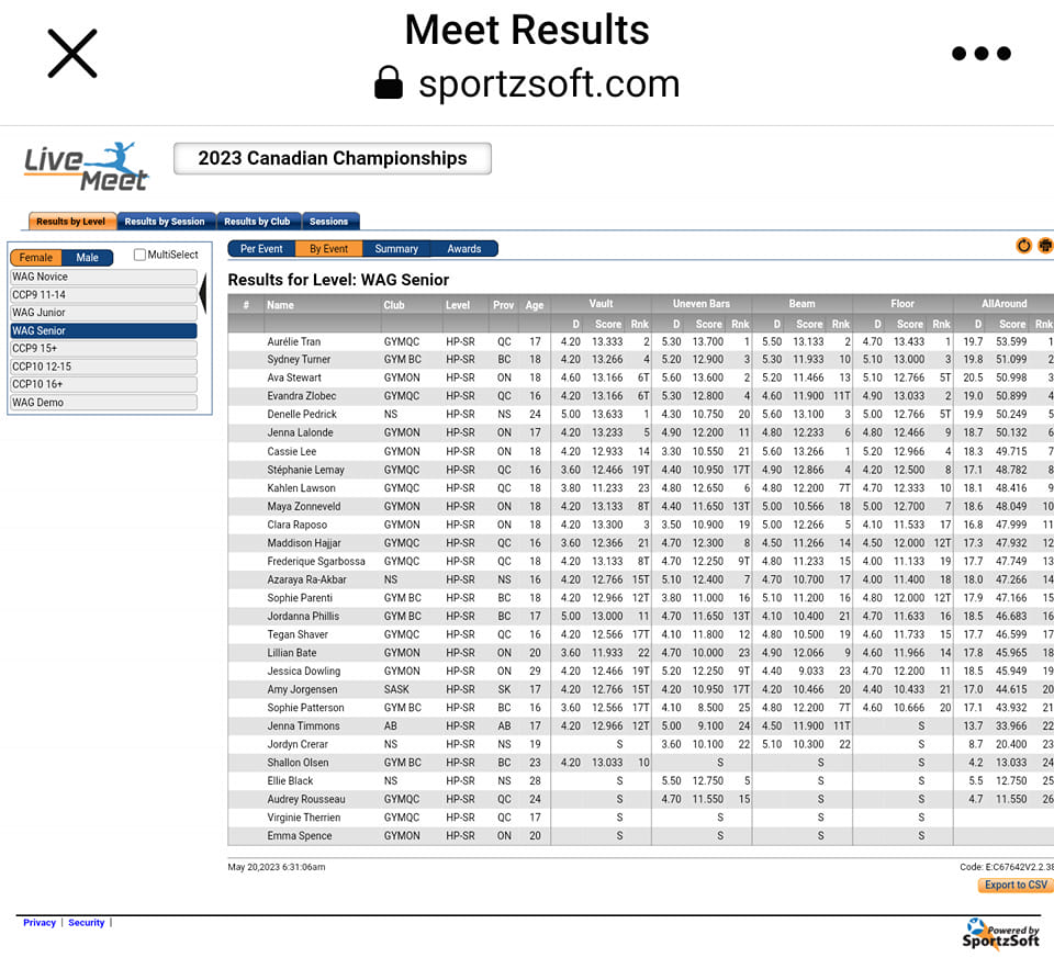 Click through for more information on the competition – Canadian Championships in Men’s and Women’s Artistic Gymnastics 2023