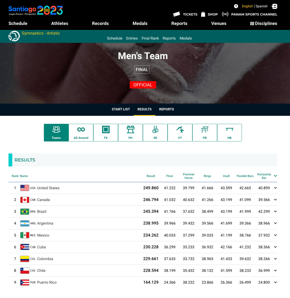 Rachael points out that the system used for the PanAm Championships is quite good. A very clear and intuitive interface than anyone can use instantly. And it includes a lot of data.
