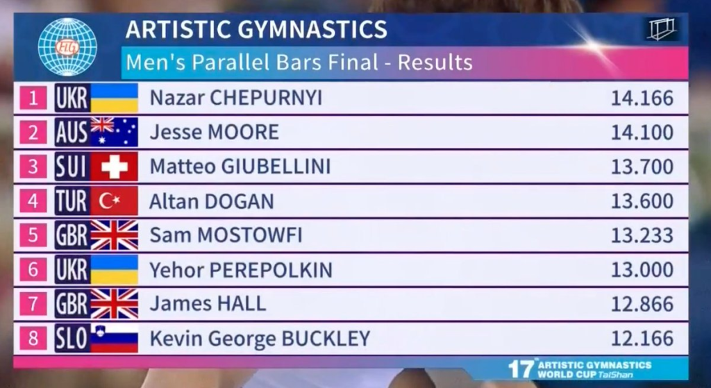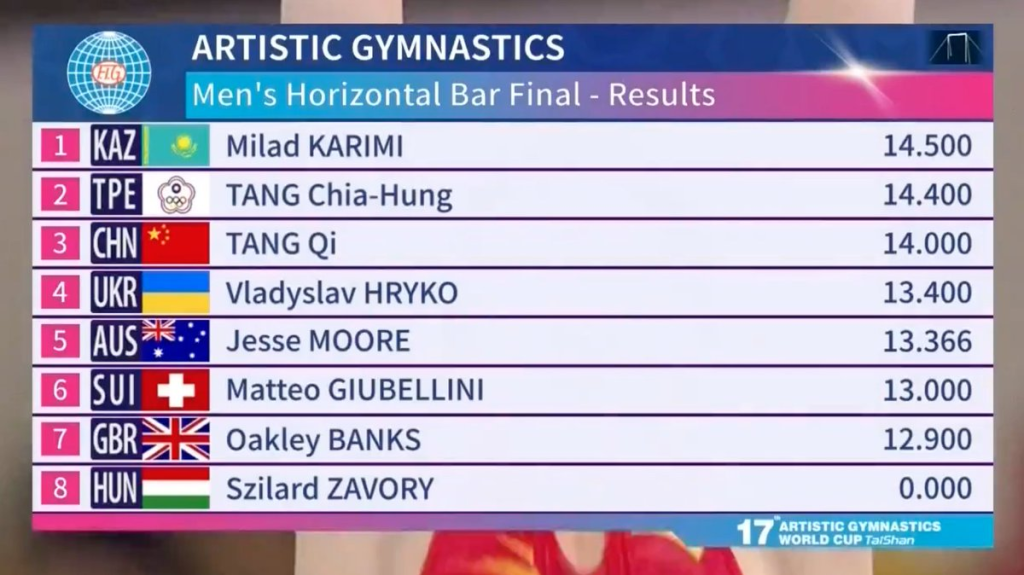 Doha World Cup RESULTS 2 Beam Floor Vault P Bars H Bar Share this: Click to share on X (Opens in new window) X Click to share on Facebook (Opens in new window) Facebook Click to share on Tumblr (Opens in new window) Tumblr Click to email a link to a friend (Opens in new window) Email Click to print (Opens in new window) Print Like Loading... Published by Rick Mc Career gymnastics coach who loves the outdoors, and the internet. View all posts by Rick Mc