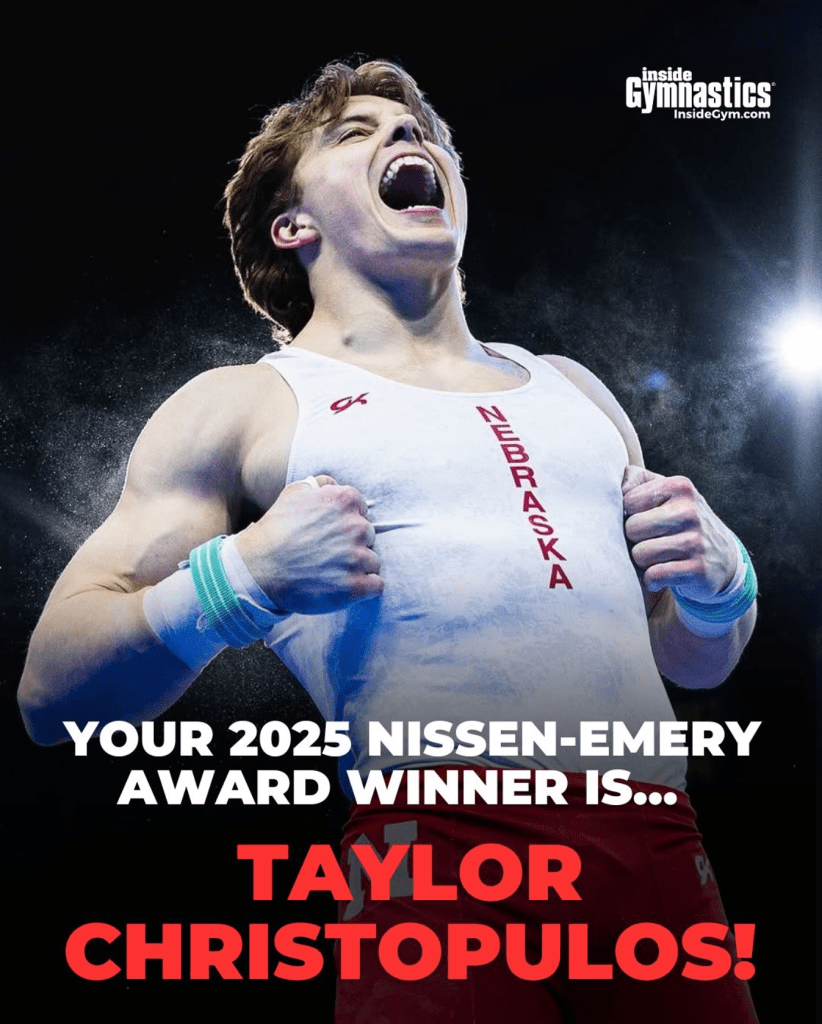 Nebraska men’s gymnast Taylor Christopulos was named the recipient of the Nissan-Emery Award, Nebraska’s fourth all-time and first in 37 years as Tom Schlesinger won the award for NU in 1988 under head coach Francis Allen. …