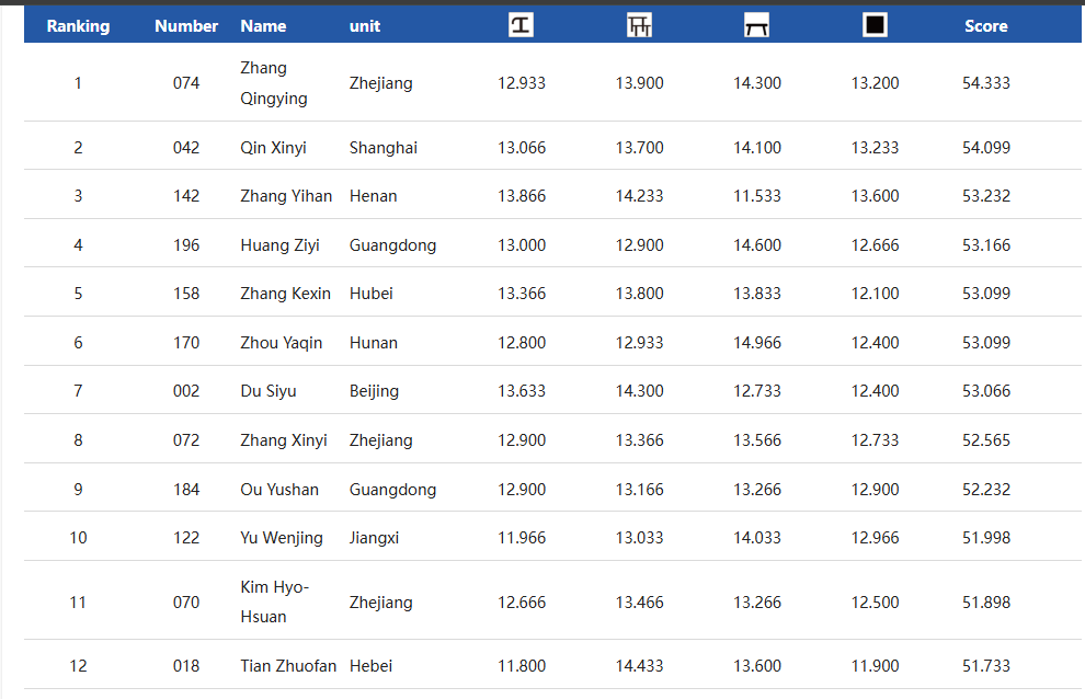 Chinese Gymnastics Championships 2025 🥇 Zhang Qingying 54.333🥈 Qin Xinyi 54.099🥉 Zhang Yihan 53.232 Zhang Qingying Share this: Click to share on X (Opens in new window) X Click to share on Facebook (Opens in new window) Facebook Click to share on Tumblr (Opens in new window) Tumblr Click to email a link to a friend (Opens in new window) Email Click to print (Opens in new window) Print Like Loading... Published by Rick Mc Career gymnastics coach who loves the outdoors, and the internet. View all posts by Rick Mc