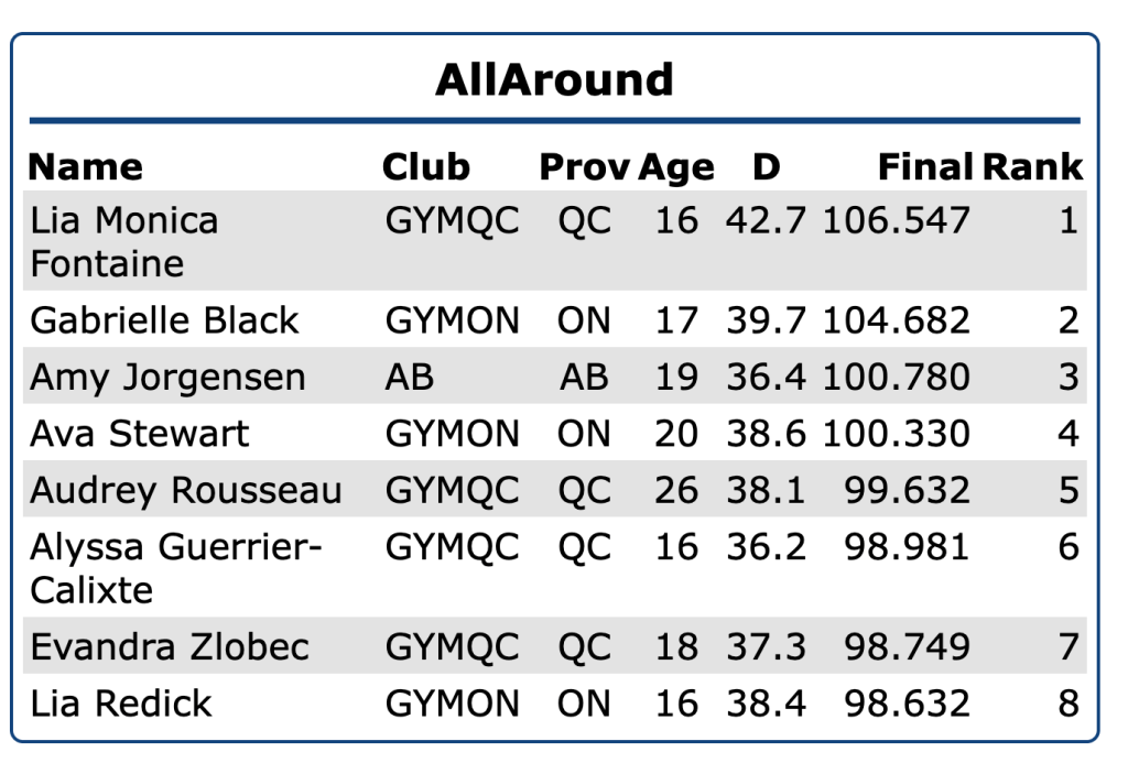 Lia won Vault & Floor. Gabrielle won Beam. Ellie won Bars but did not compete the AA.