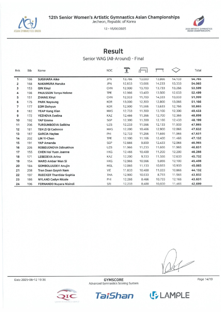 SUGIHARA Aiko is age-25. She was the 2015 Asian team and all-around champion. This must be a first in WAG.