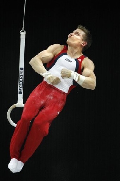 FILE – This Oct. 22, 2010, file photo shows Jonathan Horton of the United States performing on the rings during the men’s individual all-around final of the World Gymnastics Championships in Rotterdam, Netherlands. Horton knows he needs to clean up his act. The two-time U.S. champion gymnast won the bronze medal at last fall’s world championships, joining Paul Hamm as the only American men to win world all-around medals in the last 30 years.(AP Photo/Bas Czerwinski, File)