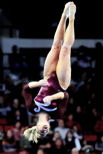 Alabama’s Geralen Stack-Eaton scored a team high of 9.900 on beam in the Crimson Tides’ loss to the Georgia Gym Dogs Friday, Jan. 23, 2009, at Stegeman Coliseum in Athens, Ga. (AP/Kelly Lambert/Athens Banner-Herald)
