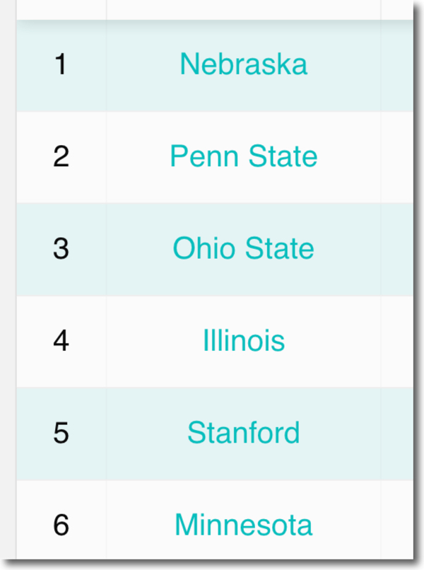 | Week 1 | Price (Stanford) – UB | Lee (UCLA) – UB | Finnegan (LSU) – UB |