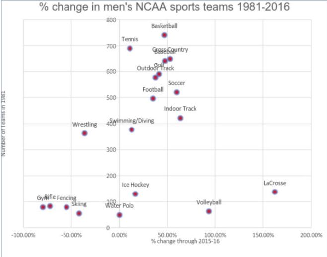 Growth of Men’s NCAA Sports Relative to Population Size in 1981