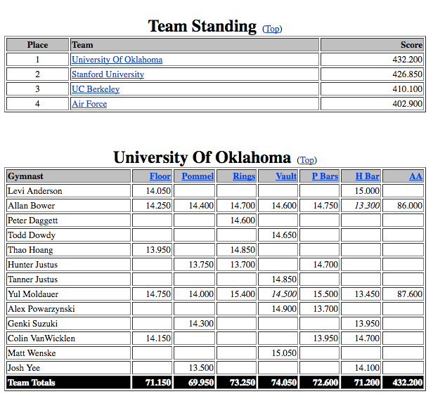 The USA Gymnastics Collegiate Championships is for Division I, II and III schools with less than seven-and-a-half full scholarships.