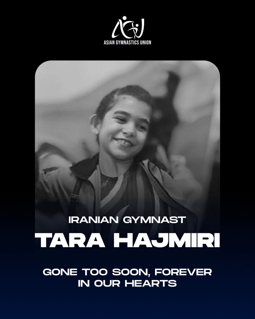 With deep sorrow, the Asian Gymnastics Union mourns the loss of Tara Hajimiri, an 8-year-old Iranian gymnast whose life was tragically taken in the recent conflict.