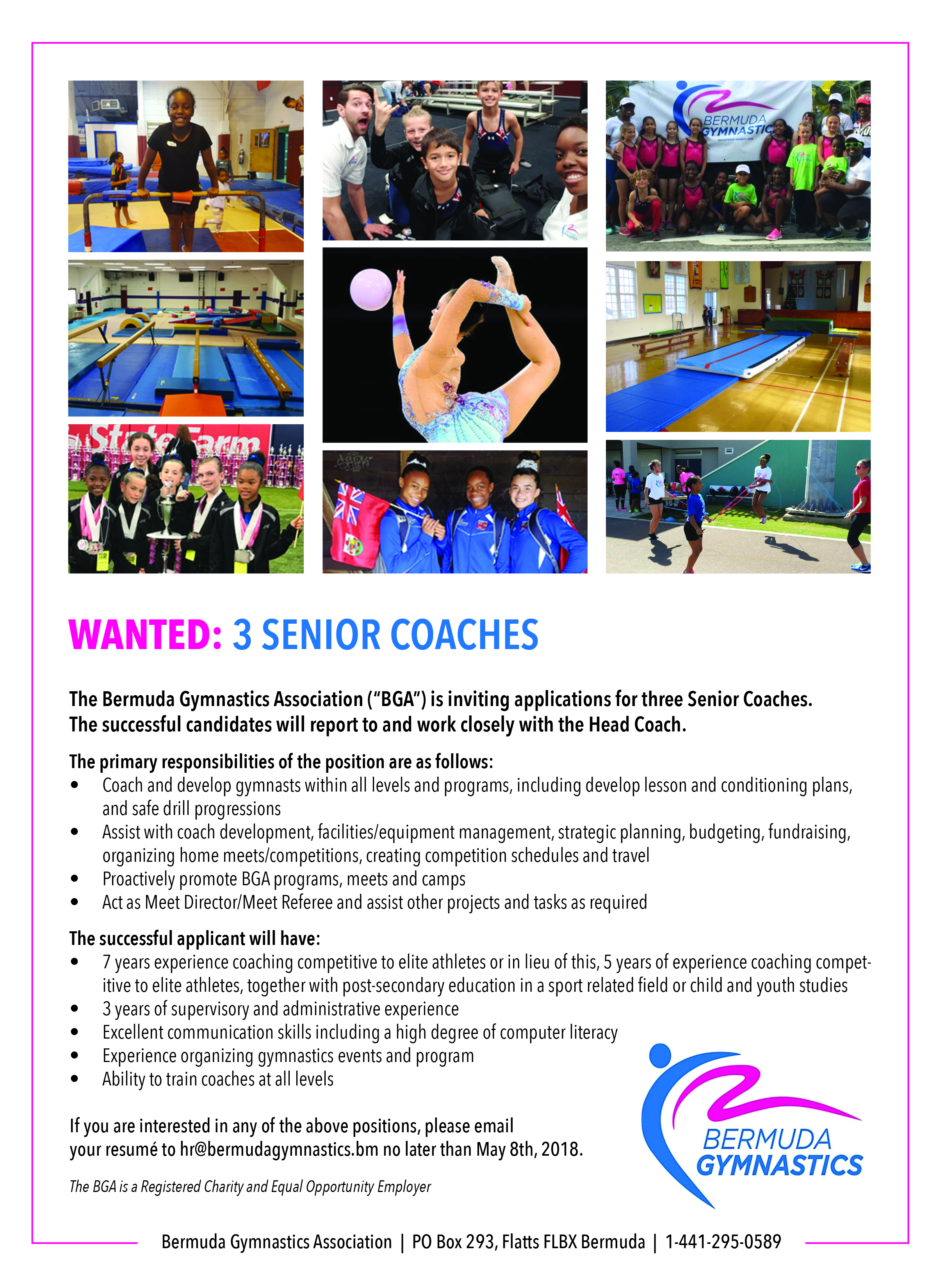 - two full-time Women’s Competitive Coaches (Intermediate Level)