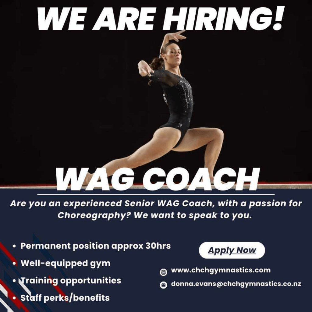 The Christchurch School of Gymnastics is looking to hire a senior WAG coach with choreography experience.