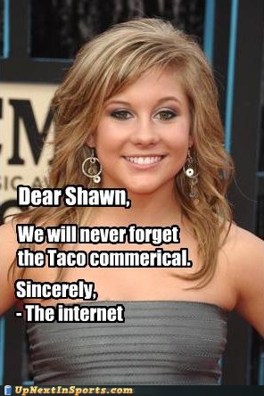 Previous ImageNext Image funny-sports-pictures-shawn-johnson-taco-commerical click the photo to watch it Share this: Share on X (Opens in new window) X Share on Facebook (Opens in new window) Facebook Share on Tumblr (Opens in new window) Tumblr Email a link to a friend (Opens in new window) Email Print (Opens in new window) Print Like Loading...