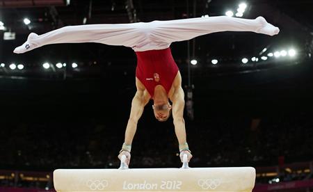 Krisztian Berki of Hungary competes in the men’s gymnastics pommel horse final in the North Greenwich Arena during the London 2012 Olympic Games August 5, 2012. REUTERS/Brian Snyder