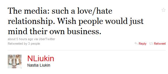 Previous ImageNext Image Nastia-Tweet Share this: Share on X (Opens in new window) X Share on Facebook (Opens in new window) Facebook Share on Tumblr (Opens in new window) Tumblr Email a link to a friend (Opens in new window) Email Print (Opens in new window) Print Like Loading...
