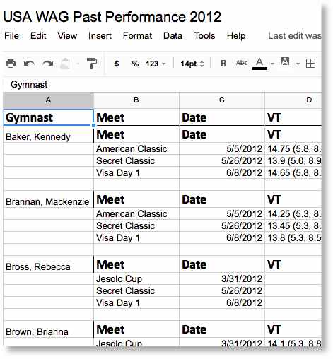 Previous ImageNext Image WAG scores USA Share this: Click to share on X (Opens in new window) X Click to share on Facebook (Opens in new window) Facebook Click to share on Tumblr (Opens in new window) Tumblr Click to email a link to a friend (Opens in new window) Email Click to print (Opens in new window) Print Like Loading...